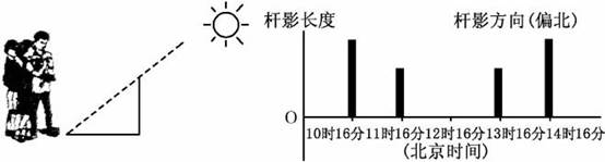 3、单选题 我国某高中学生在某日中午前后,进行地理课的研究性学习活动。他们利用一根标杆,每隔1小时测量一次杆影的长度,并将测量结果绘制成示意图(右图)。据此判断12~13题。