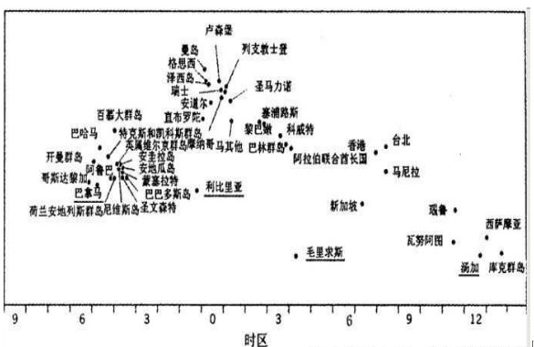 1.位于香港的某公司在10:00至11:00之间,可以和下列哪个金触中心交易2.世界离岸金融中心分布