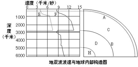 ⑶图中,自B向下地震波波速出现的变化是: ,这种变化说明__________________________________________________________ 。