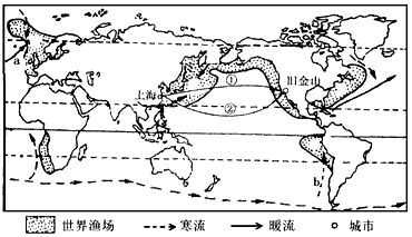 (1)从上海到旧金山的货轮沿①、②两条航线航行,航速较快的是________,理由是________________