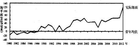 (1)描述我国1980年至2012年海平面的变化特点。(4分)