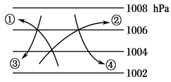 5、单选题 该图为等压线分布示意图,其中表示南半球近地面风向的是