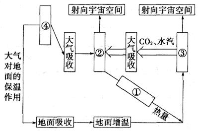 1.图中太阳辐射、地面辐射、大气辐射、大气逆辐射的数字代号按顺序依次是2.近地面大气的直接热源来自