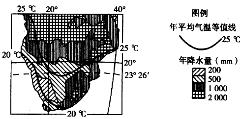 4、综合题 读世界某一区域年降水量和年平均气温等值线图,回答下列问题。