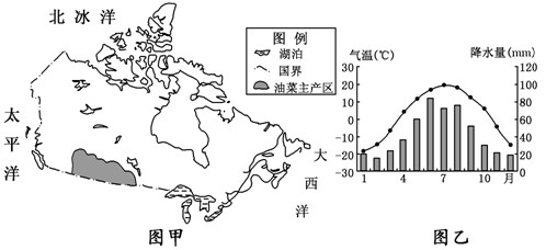 材料3:加拿大中南部油菜主产区气候统计资料(图乙)。