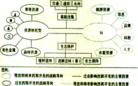 小题1:图中现在和将来西部开发的战略导向M,代表的是 A.技术依托型 B.劳动力依托型 C.市场导向型 D.运输指向型
