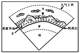 3、单选题 右图为地球圈层结构示意图。读图,完成下列问题。一般认为,岩浆的主要发源地是( )