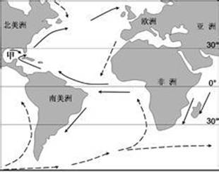 5、单选题 2010年4月20日,墨西哥湾发生漏油事件(图中“甲”海区),造成严重海洋污染,有关专家担心浮油可能“侵入”大西洋,甚至漂向欧洲沿海,读墨西哥海域示意图,回答以下问题。
