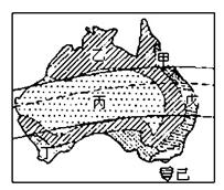 4、单选题 读“澳大利亚自然带分布图”,回答问题。