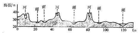 3、单选题 下图示意我国某地形区典型地段的地形剖面。