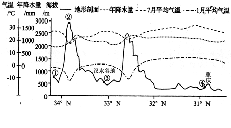 点评:本题难度较小,考查了我国地形剖面及相关气候资料图的简单应用,解答时结合我国地形、地势和气候分布具体分析即可。