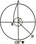 5、单选题 该图为极点俯视图,AB是晨线,CD是日界线,读图后回答问题。