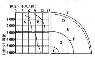(2)图中C-H分别表示地球内部构造,D表示 界面,地震波经过此界面的变化情况是_______________________________________。