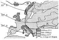 (2)?依据材料二,请描述0℃等温线分布特点,并分析影响甲、乙、丙三处0℃等温线走向的主导因素。(6分)