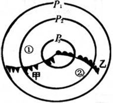 5、单选题 下图为北半球某一天气系统图 ( 气压值 Pl >P2 > P3 ), 下列叙述正确的是( )