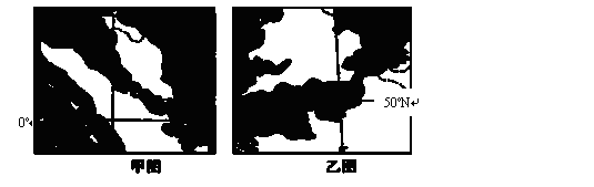 小题1:读图,根据图中的经度、纬度和海陆轮廓判断,甲图为马六甲海峡,A错、B对。乙图为英吉利海峡,C、D错。
