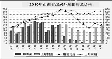 材料二:2010年山西省煤炭外运销售及价格图。