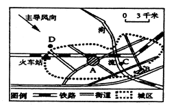 点评:本题难度一般,学生只要掌握城市各功能区布局的一般规律,并结合环境因素判断污染工业的合理布局和交通线的合理布局。