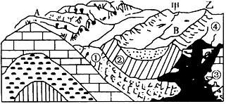 (1)图中的地质构造是 ,其中A为 斜,B为 斜。