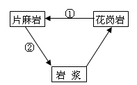 A.岩层中可能含有化石 B.是岩浆侵入下地幔冷却形成 C.因发生变质作用而棱角很少 D.多呈浑圆状主要是由于风化作用 3、填空题 内力作用主要表现为?、?和变质作用。 4、单选题 有化石存在的成层岩石是 5、单选题 读地壳物质循环略图,回答问题。 |