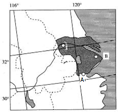 本题解析:图示位置为长江的入海口城市群。这里是我国东部沿海最为发达的地区,但能源和矿产资源紧缺、人口稠密、土地资源紧张。A城是杭州,B城是上海。