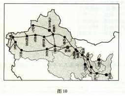 4、单选题 图10为古“丝绸之路”国内线路图。读图,完成第23、24题。