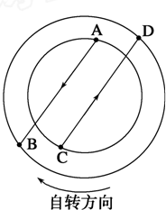 【小题1】④点自转一周后又回到④点的时间间隔是 A.一个太阳日 B.比地球自转真正周期多3分56秒 C.比地球自转真正周期少3分56秒 D.约为23时56分4秒