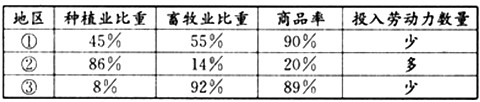 1、单选题 读上面几个地区农业基本情况比较表,与②地区农业相似的地区是