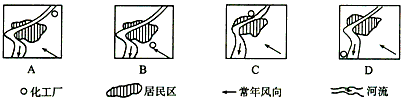 3、单选题 从环境效益角度考虑,下列四幅图中工业布局合理的是