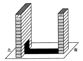 3、单选题 11月22日,某地理研究性学习小组在观测房屋采光状况时,发现甲楼阴影恰好遮住乙楼三层中部,在甲楼顶层用GPS测得纬度为31.8366°、经度为117.2179°、高程为96m。完成1~2题。