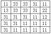 4、单选题 下图表示辽宁西北部某地徒弟利用的变化,将该区域分为25个方格,每个方格中的两个数字按左右顺序分别代表1979年和2005年土地利用类型,完成1~2题。