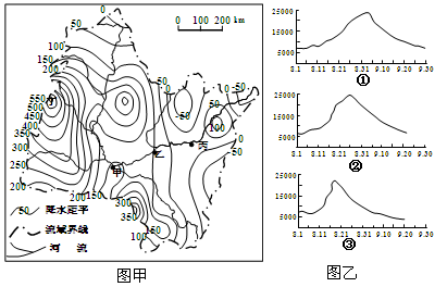 【小题1】最高洪峰在乙水文站出现的时间约为
