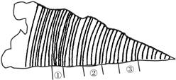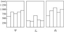 ①组年轮最密,说明树木生长速度最慢,与乙图相对应;甲图中的第五个年份降水最多,与②组年轮吻合;丙图中的第三个年份降水最多,正好③组中第三个年轮最宽。