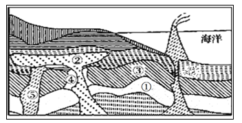 3、单选题 读某地地质剖面图(③为石灰岩),(下图)完成下列各题。