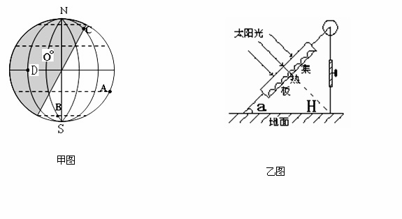 3、综合题 读甲图(阴影部分为黑夜),回答下列问题: