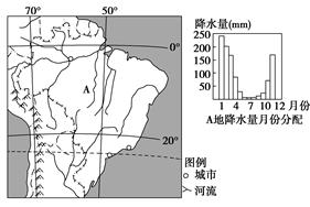 (1)根据图中海陆轮廓和A、B、C三地所处的位置,可以判定,A地是地中海气候,B地是温带大陆性气候,C地是温带季风气候。