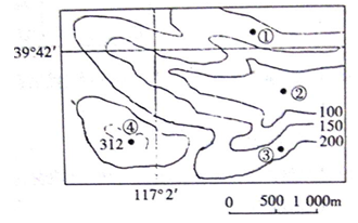 小题1:结合图示等高线图判断,②位于盆地内部,地势最低,但海拔高度与其他三地差异不大,故热量条件远优于其他三地,不恰当。C项符合。
