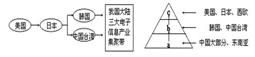 4、单选题 读我国承接全球IT产业转移的路径图(左图)和IT全球化竞争的金字塔模型示意图(右图),回答1-2题。