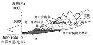 小题1:读图可以看出E地林线范围是3000~3200米,F地林线范围是4400~4600米,E地与F地的林线海拔相差应该是1200~1600米,故答案选D。