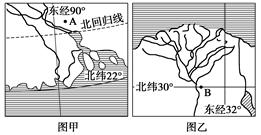 A.图甲地区易受风暴潮侵袭 B.图乙地区常受台风影响 C.图乙地区经常发生海啸 D.图甲地区土壤盐渍化严重 |