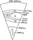 A.①圈层气温随高度增加而递减 B.②圈层的厚度陆地较海洋大 C.③圈层横波不能穿过 D.④圈层的物质状态为固体 |