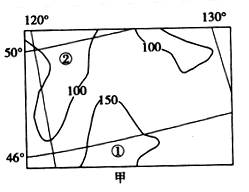 2. 甲地降水较丰富,与之关联的资源有 ①铁矿 ②水能③石油 ④森林 ⑤煤炭
