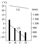 3、单选题 读下面气温曲线和降水柱状图,完成下列各题。