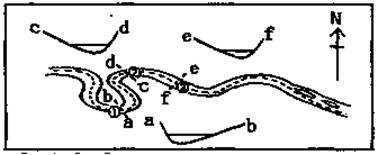 【小题2】河流流向与等高线凸出方向相反,可以判断河流水位高于两侧的潜水水位,所以是河流水补给地下水,B对。A、C、D错。