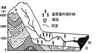 小题2:图中甲、乙、丙、丁四处可能形成的地貌与下图中四幅图配对正确的是