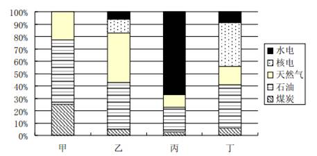 5、单选题  中国既是能源生产大国,又是消费大国,但每吨标准煤的产出效率仅相当于日本的10.3%、欧盟的16.8%、美国的28.6%。读“中国和世界能源消费的结构(煤、石油、天然气和其他能源)图”,回答问题。?