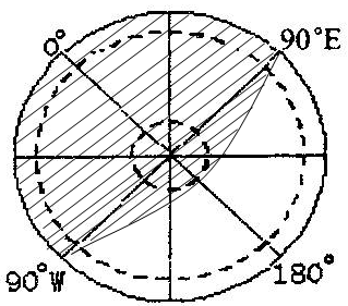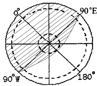 考点:本题考查光照图的判读。 点评:本题难度较大,试题综合性强,解答此题的关键是:(1)根据极圈内的现象判断日期及太阳直射点所在的纬度位置。(2)根据0度经线来判断太阳直射点所在的经线。(3) 根据0时经线和180度经线来判断新旧一天的比例。