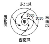 【小题1】若等压线如图中虚线所示时,甲处气压低于乙处,则A处的风向可能是