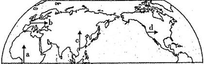 小题2:北美洲大陆西岸受板块挤压形成南北方向山脉,受地形的阻挡,沿箭头d方向属于非地带性现象。