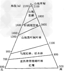 5、多选题 ? 下图为我国某山体不同坡向垂直带谱示意图。某校地理兴趣小组通过对该山体垂直带谱的分析,提出了不同的看法。读图回答1—2题。